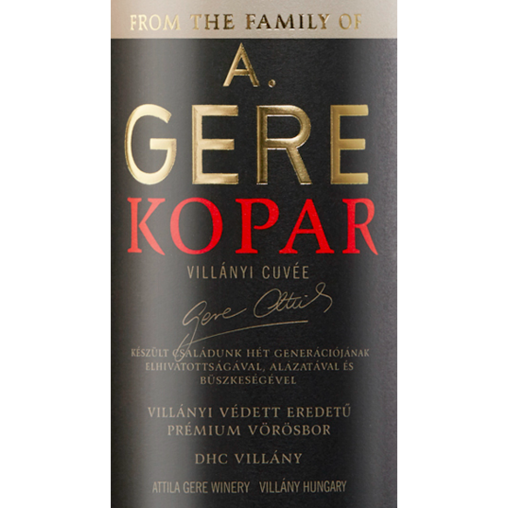 A Gere Cuvée heeft diepe, rijpere tonen, een harmonie van zwarte en rode bessen, prachtig geïntegreerde vatkruiden en mineraliteit. Een goed gerijpte fruitigheid komt op de voorgrond en wordt vergezeld met tekenen van vat- en flesrijping.